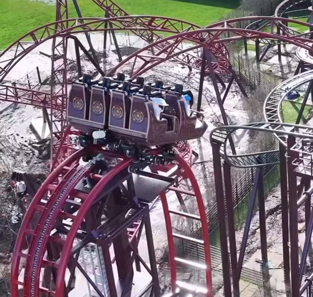 While theming is still being finalised, seeing the ride in motion gives us our first real sense of Drakon’s speed and intensity.