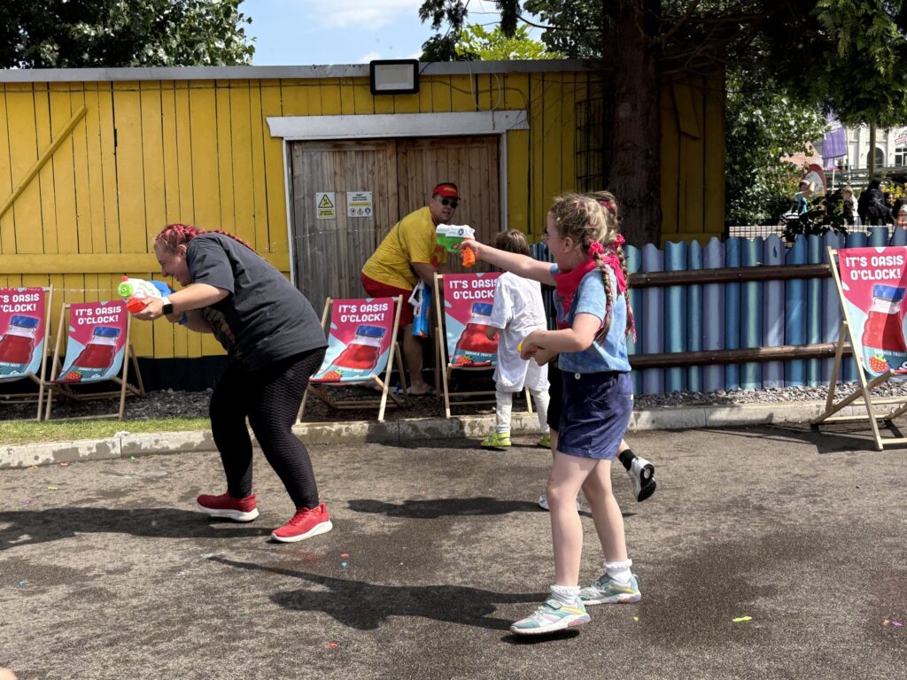 The designated water play zone includes convenient filling stations for water guns, with options to bring your own or purchase one on-site. The thoughtfully designed space incorporates refreshing paddling pools and garden sprinklers, providing welcome relief during warm summer days.