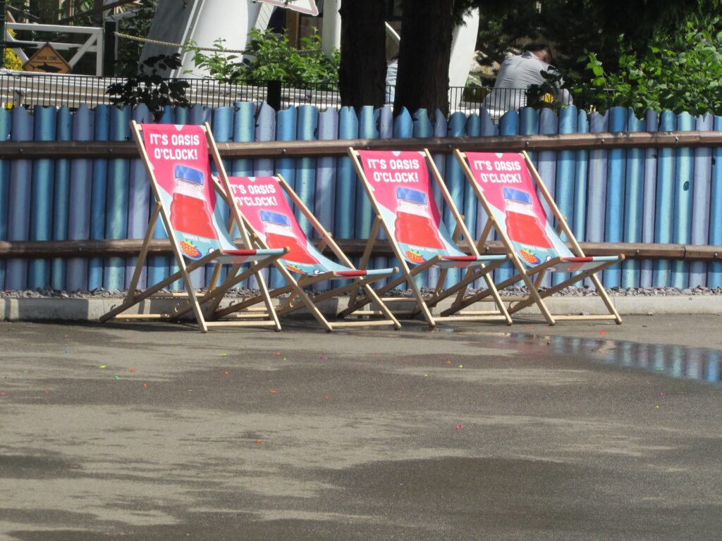 Parents can relax in the numerous deckchairs and benches while supervising their children enjoying water battles near the Air Race attraction.