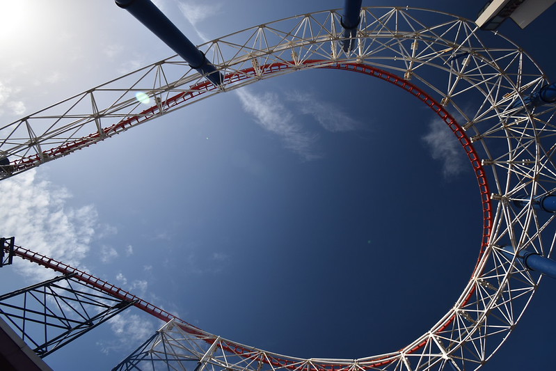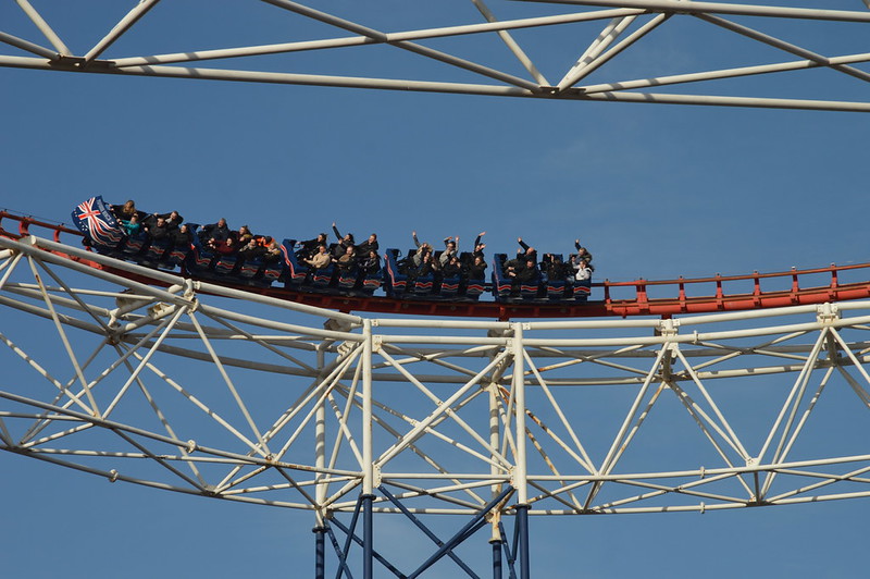 The horizon tilts, Blackpool spreads out beneath you, and suddenly the scale of what you’re sitting on becomes impossible to ignore. This isn’t just tall for a roller coaster — it’s exposed. There’s nothing around you but sky, sea air, and the realisation that you are very, very high.